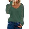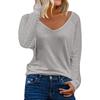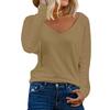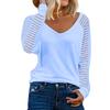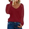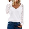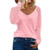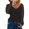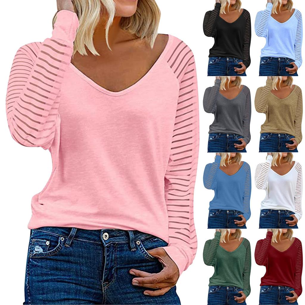 Women's Patchwork Long Sleeved Top Striped Casual Loose Shirt Solid Color Top V Neck Top