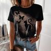 Women's Summer Casual Crewneck 3D Print Moonlight Cat Pattern Breathable O Neck Short Sleeve Oversized T-shirt Summer