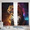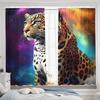 Forest Leopard And Starry Sky Background Curtain, Beautiful, Dreamlike Color, A Set Of Two, Home Bedroom Living Room Curtain.