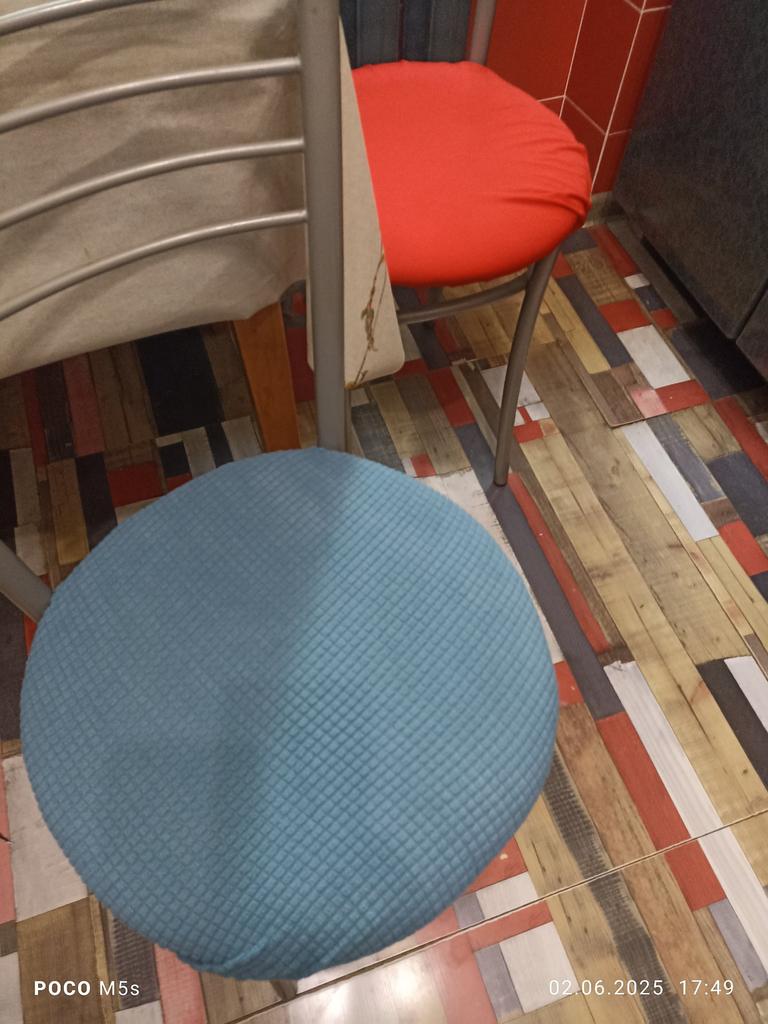 Unfortunately, the covers on the round seats of the chairs do not hold well, they constantly slip off. It was necessary to provide additional ties for the covers to attach them to the seats more securely.