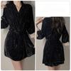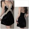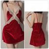Silver Fine Glitter Velvet Suspender Pajamas Women's Nightgown Lace Sexy Pajamas with Chest Pad Set