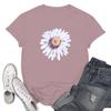 Ladies Casual Chrysanthemum Printed T-Shirt Round Neck Pullover Short Sleeve Top