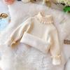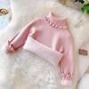 Girls' Sweater with High Collar and Lace Collar Winter One-piece Velvet Children's Solid Color Sweater with Thick Velvet Sweater