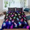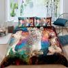 Galaxy Cat Duvet Cover Set Microfiber Universe Galaxy Bedding Set Cute Kitten Comforter Cover Outer Space Planets Quilt Cover