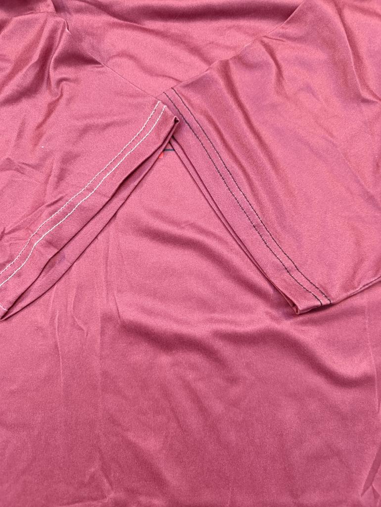 The sleeves are hemmed with different threads - one sleeve is hemmed with white threads, the other with black.