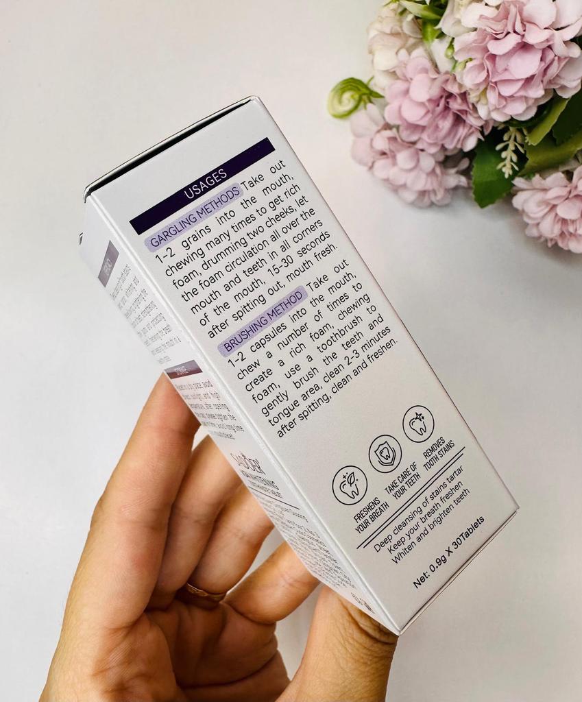 At first I was a little hesitant to try teeth whitening tablets, because I'm only used to regular toothpastes, but I was really pleasantly surprised! I've been using the tablets for a few days now, and I've started to see a subtle change in the shade – less yellowness, especially in the areas that tend to stain (I drink a lot of coffee...). The texture is a bit different, you need to get used to brushing with a tablet and not toothpaste, but it's actually pleasant in the mouth and leaves a feeling of freshness that I didn't have with regular toothpastes. The breath really feels fresher after use, and even my partner noticed it.. What I liked most is that it came in precise doses – one tablet for each time, convenient to take in my bag when I leave the house. In terms of ingredients – there is no feeling of harsh chemicals or aftertaste, which is a big advantage for me. Overall – a good, comfortable user experience, and there are results. I continue to use it and hope to see even more significant improvement in whitening. I recommend it to anyone looking for a gentle and effective way to whiten teeth without going to expensive cosmetic dentistry.