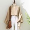 Women Elegant White Black Loose Blouse Elegant Vintage Long Lantern Sleeve Shirts Office Lady All-match Design Chic Female New Casual O-neck Tops