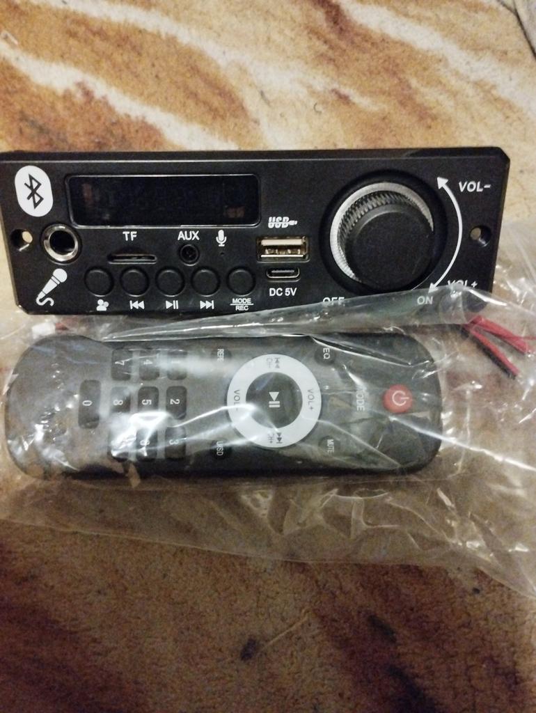 MP5 Decoder BoardSpecification1. Supporting USB, TF card, Bluetooth wireless connection, infrared remote controller2. Play MP3, WMA, lossless, Power-off memory playbackSupply 5V 12V Power4. Radio FM87.5-1085. LED digital tube display.6. AUX voice input.7. Shell size: 25 * 106 MM Key function:1. PREVE: Last song / volume reduction (Short press on the previous track, long press the volume down)2. Next: next song / volume plus (Short press the song, long press volume plus)3. Play: Press briefly play / pause. Settings:Enter the parameter settings menu1. Super compatible with standard formats such as DVD, SVCD, VCD, DVCD, DVIX, AVI, MKV, FLV, etc.2. various voice-over languages (English, French, Portuguese, German, Danish, etc.) multi-angle, multi ple subtitles3. Video output support: CVBS4. Can configure VFD / LCD / LED to perform all types of functions5. Supports HD video resolution (1280 * 720)6. Supports image formats: JPEG, BMP, for Kodak images, CDG;7. Supports smart upgrading8 audio output radiance: greater than 750mv (1K0DB)9. Power product consumption: 5V / 350mA