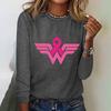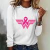 Pink Ribbon Symbol Print Designer Long Sleeves T Shirt Fashion Women Clothing Fall Cotton O-neck Women's T-shirts Loose Tops