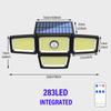 283LED Solar Outdoor Light, Motion Sensitive Floodlight with Remote Control and 5m Extension Cord, 3 Modes, for Patio Garage
