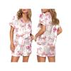 Women’s 2 Piece Lounge Set Pajamas Short Sleeve Lapel Cute Bow Print Button Up Shirt Tops + Loose Shorts Set for Sleepwear