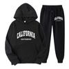 U.S.A City Print Men And Women Hoodies + Pants 2 Pieces Sets Men Fashion Sweatshirts Women Casual Hooded Pullovers Trouses Set