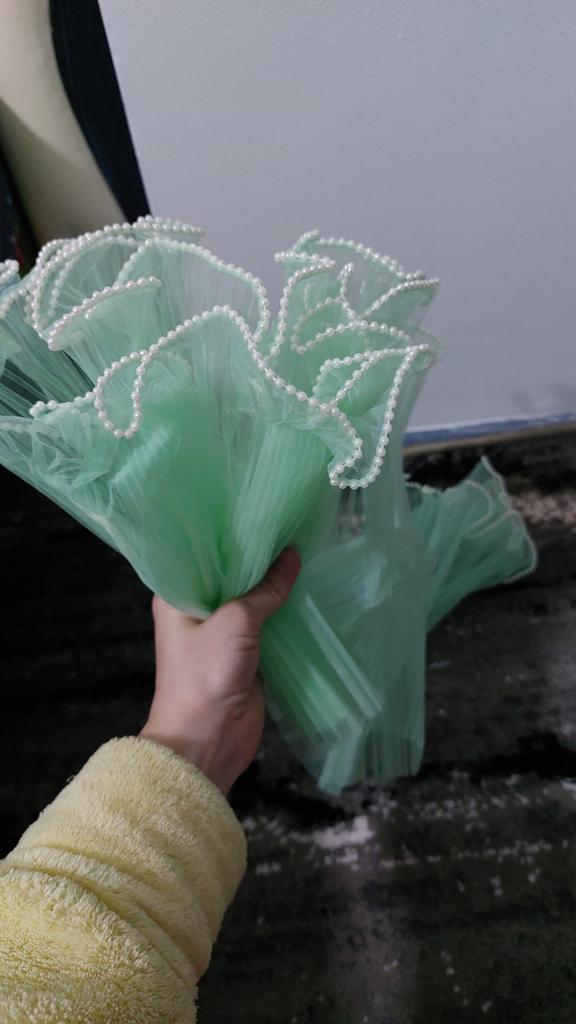 4.37 Yard Flower Wrapping Mesh Yarn,Pearl Edge Bouquet Floral Packaging Paper,DIY White Wrinkled Wavy Net Yarn for Wedding,Birthday ARI