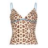 Women's Color Contrast V Neck Personality Leopard Print Halter Spice Sexy Halter Waist Slimming Vest Top