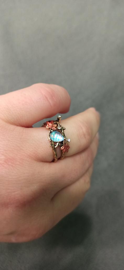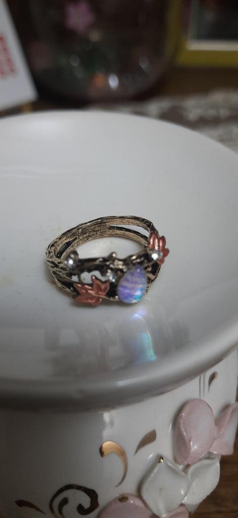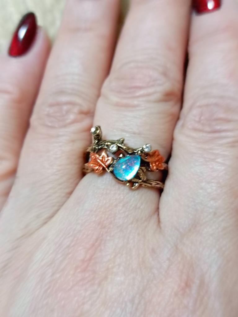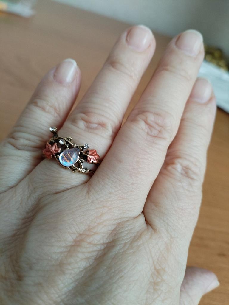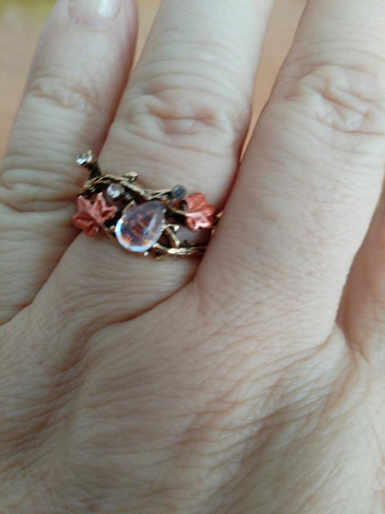 Cute ring, slightly worse than in the photo, the drop is larger, the leaves are coarser, but overall cute.