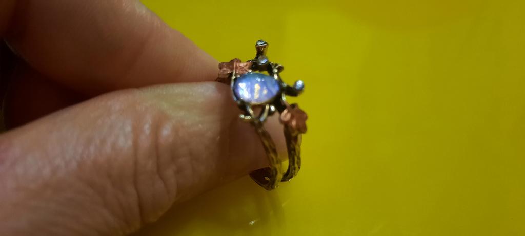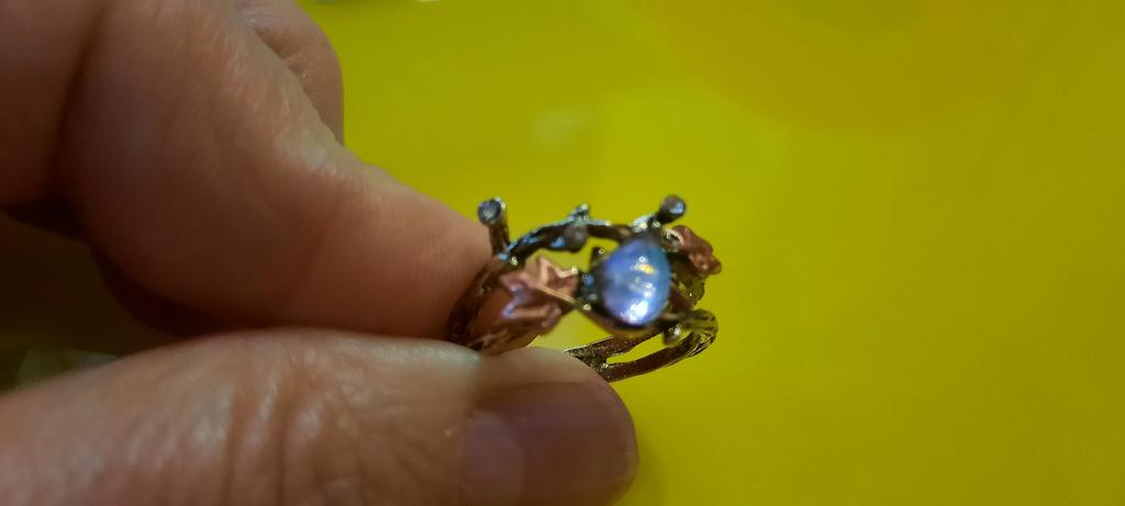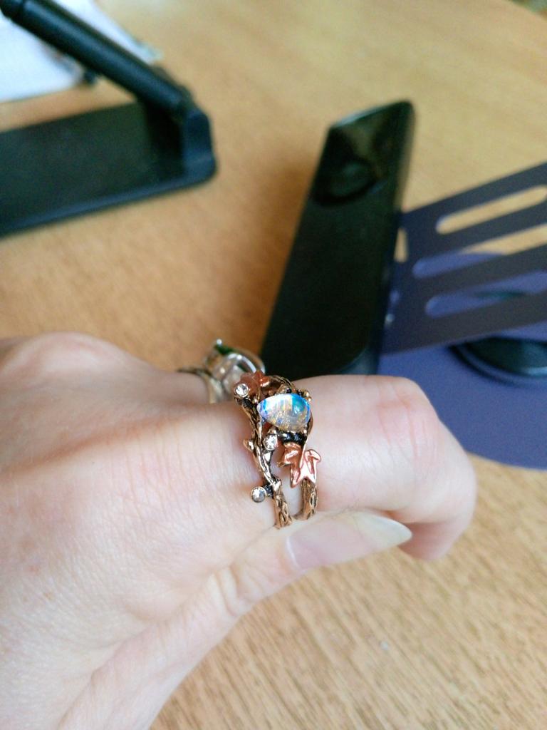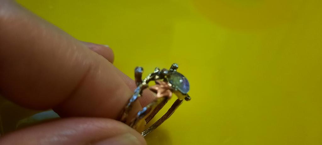 In the photo, the ring looks like a brown twig, but it arrived light and thinner, and the stone in the photo is moonstone, but in reality the stone is a simple colored glass. Deception!!!
