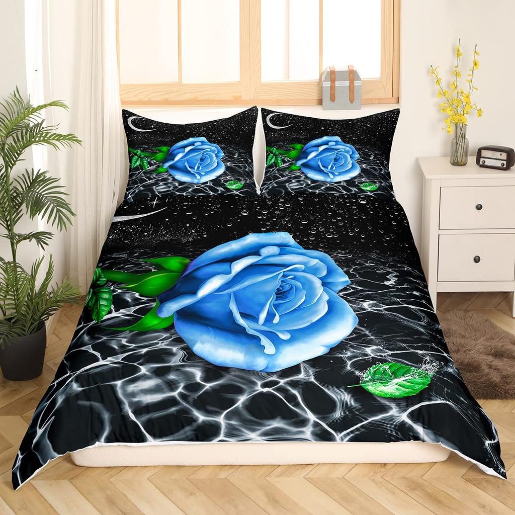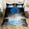 Blue Rose King Queen Bedding Set Romantic Floral Duvet Cover Abstract Water Ripples Flower Comforter Cover Polyester Quilt Cover