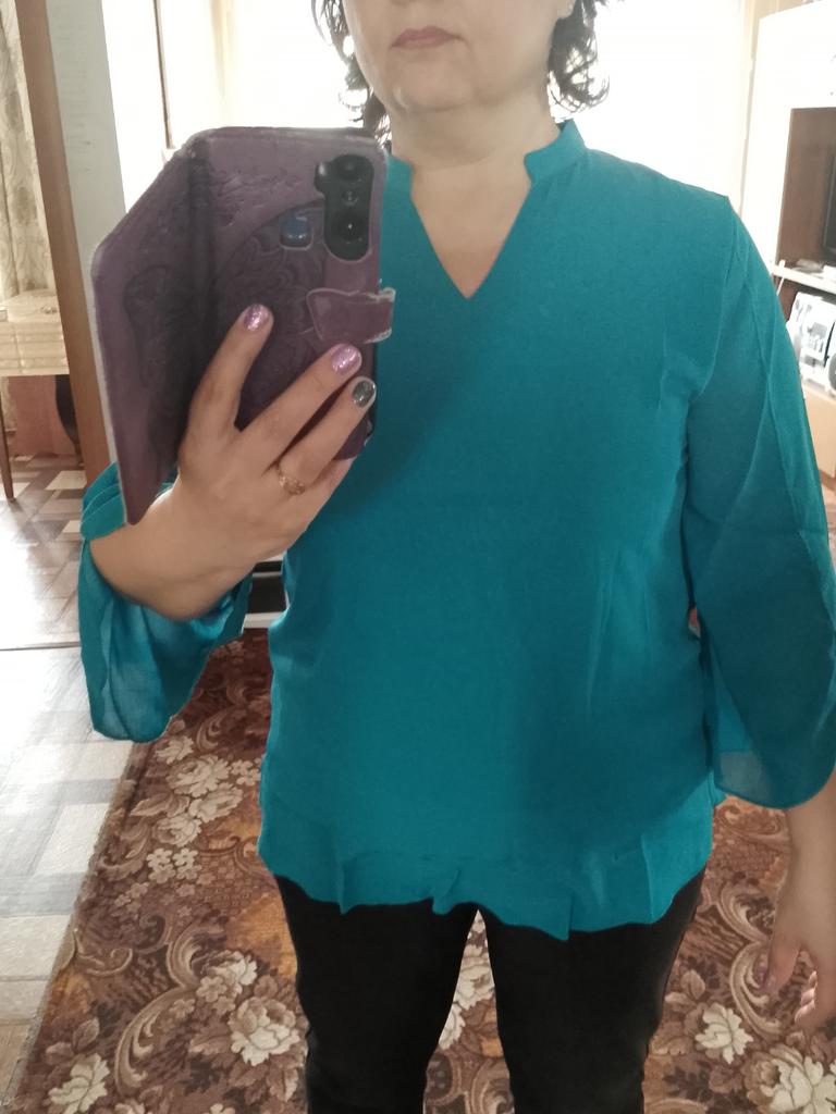 The blouse is generally good, I will probably wear it, but it is very simple for my taste. Although I am an elderly woman, I love things with a twist. Now I will think about how to decorate it: with a flower, beads, or something else I come up with. Nevertheless, I thank you and give it five stars, as my judgment is subjective