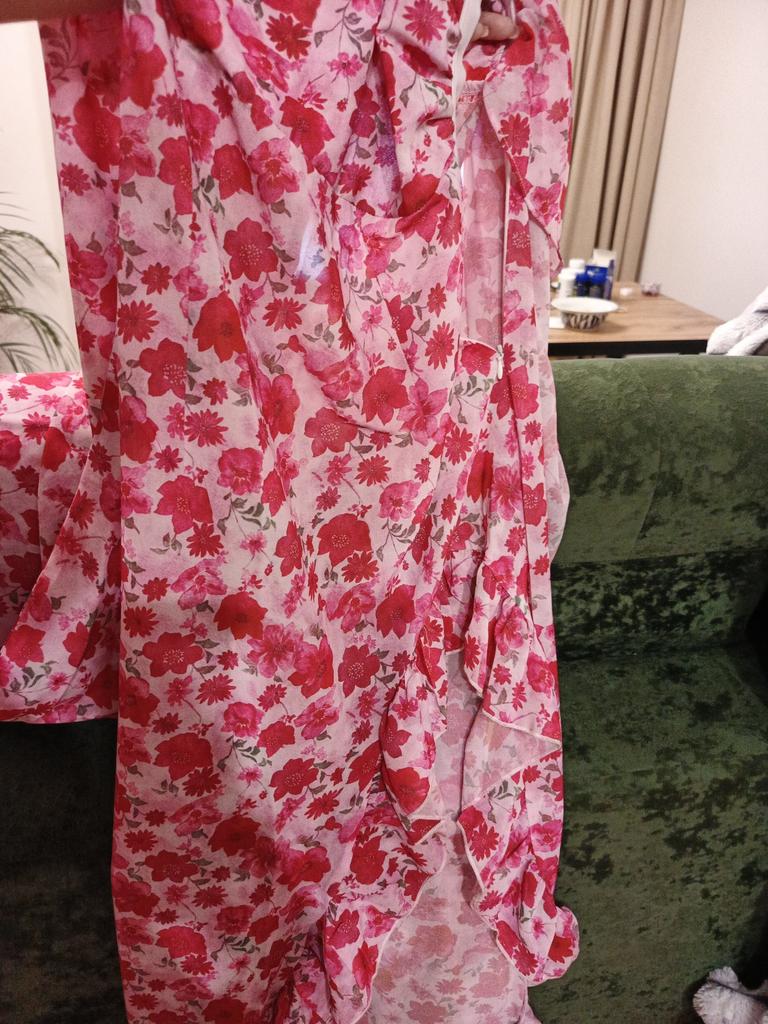 Summer Fashion Diagonal Collar Ruffled Irregular Dress Holiday Style Floral Long Dress