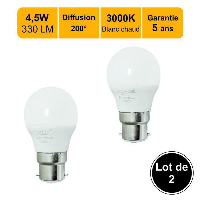 Lot De 2 Ampoules LED B22 4,5W 330Lm 3000K - Garantie 5 Ans