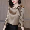 Spring and Autumn Fashion Satin Shirt Women's Design Bow Top Mother Long-sleeved T-shirt