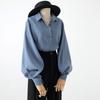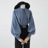 Woman Spring Autumn Style Blouses Shirt Lady Long Lantern Sleeve Stand Collar Loose Blusas Tops