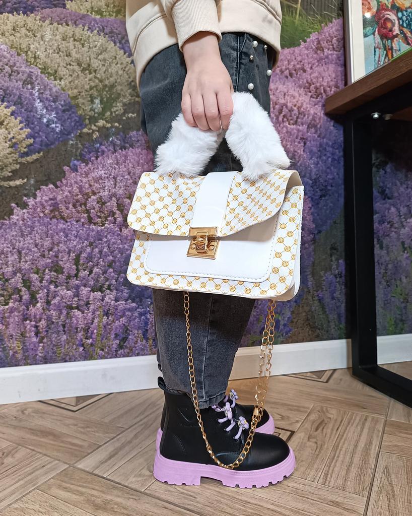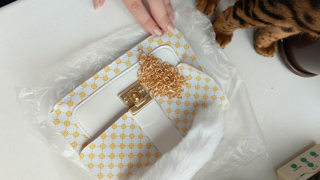 Black bag with fur handle👍👍❗️ A very fashionable bag thanks to the fur handle, soft and very cool!!! The bag is small but roomy enough for essentials. Inside the bag there is a chain so the bag can be carried on the shoulder or by hand!!!! The bag has a raw cut in the flap and has no seams. Simple, essential and elegant!!! The bag has a perfectly functioning clip, gold in color. I ordered the bag in brown but it also exists in other colors. The bag is small in size and can contain various objects in addition to the cell phone, a small wallet, the house keys. The color of the bag is exactly as in the photo.👍👍👍👌👌👌❗️ The stitching is perfect. The bag does not have an unpleasant chemical smell. TOP!!! I am satisfied with the quality of the bag and the value for money!👍👍👍✅️ The product is ideal for everyday use I think the bag will be perfect for a special evening 👍 ✅️❗️🔝🔝🔝 Delivery time: 🚚🚛✈️✈️✈️15 days in Italy. Summary✅️: Bag with shoulder strap to carry on the shoulder or by hand. Thank you so much for this!🙏🌞 Thank you joom and the seller 😘😘🙏 5 stars 🌟 🌟 🌟 🌟 🌟