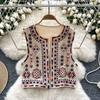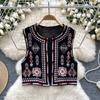 New National Style Floral Cardigan Vest Women Fashion Embroidery Cropped Waistcoat Vintage O Neck Sleeveless Female Outerwear Chic Vest Tops