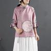 Chinese Style Retro Cotton and Linen Shirt Women's Spring and Summer Chinese Style Stand-up Collar Buttoned Top Embroidered Tea Dress