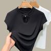 Stand-up Collar Short-sleeved T-shirt for Women's Summer New Women's Solid-color Sleeved Cotton T-shirt New Chinese Style Buttoned Top