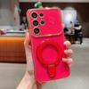Wave Frame Plating Glossy Phone Case For Samsung Galaxy S25 Ultra S24 FE S23 S22 Plus S21 TPU Soft Shockproof Ring Holder Bracket Back Cover
