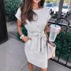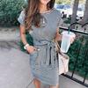 QICED Summer Women's O-Neck Short Sleeve Tunic Stripe Dresses