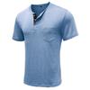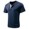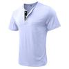 European and American Style Men’s Summer Top Short Sleeve T-shirt Solid Buttoned Round Neck Henley Shirt
