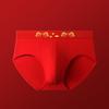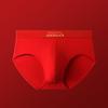 Men's Wedding Year Pure Cotton Mid-Waist Breathable Briefs, China Red