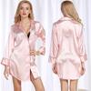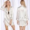 Sleepwear Long Sleeve Nightshirt Satin Sleepshirt Button Front Pajama Top for Women