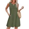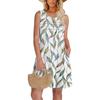 Women's Casual Crew-neck Pleated Sleeveless Print Pocket Dress