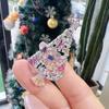 "Colorful Zircon and Pearl Christmas Tree Brooch - Gold-Plated Holiday Pin"