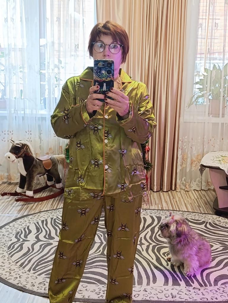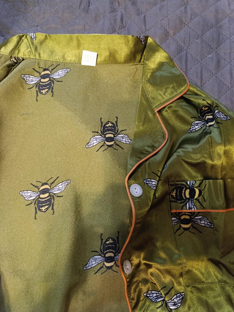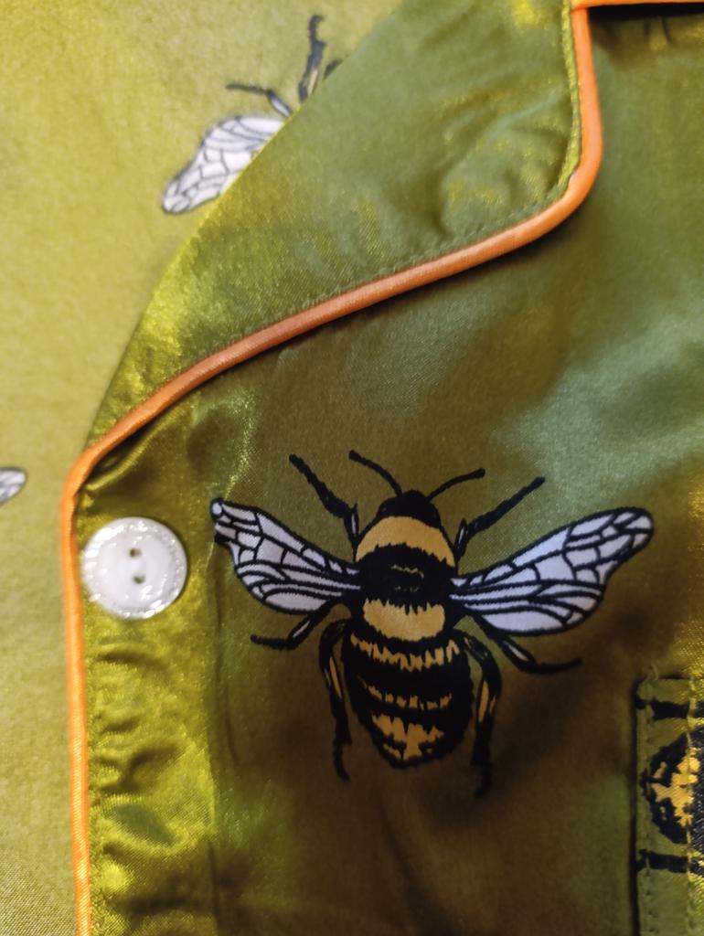 "Spring & Summer Long-Sleeve Luxury Bee Print Ice Silk Pajamas - Women's Two-Piece Set"