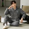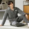 Men Pajamas Thickened Warm Fall Winter Homewear Cosy Thermal Pajamas Cardigan Sleepwear Long Sleeping Top Pant 2Pcs/set Pyjamas