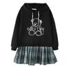 Girls' Mid-Length Pleated Plaid Sweatshirt Dress for Spring & Autumn 2024