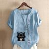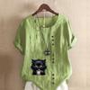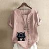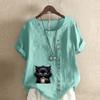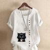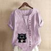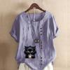 Women's Fashion Cute Black Cat Prined Short Sleeve T-shirt Loose Cotton Shirt Casual Loose Summer Blouse Tops Plus Size