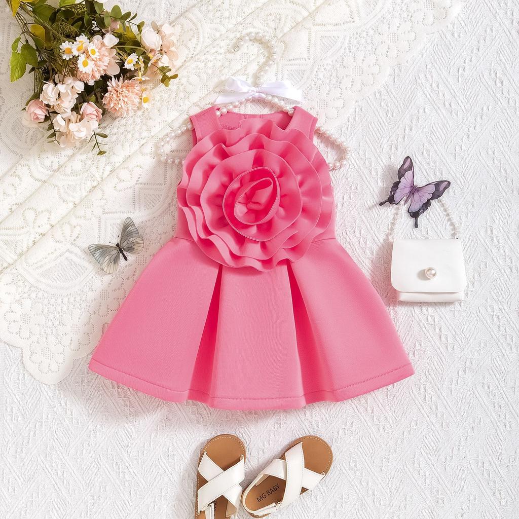 Children's Princess Dress Summer Girls Sweet Sleeveless Oversized Floral Ruffled Dress