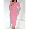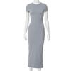 Fashion Sexy Slim Fit Casual Long Dress Women Elegant Short Sleeve Tight Fit Casual Party Dresses Women Clothing Solid O Neck Bodycon Lady Dress 26312