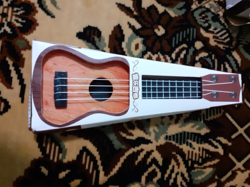 Interesting guitar, 4 strings, the sound is clear and even the box is almost not dented. Grandson is happy