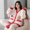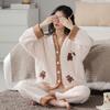 Winter Thick Flannel Pajamas Set for Women Cute Bear Pattern Ladies Sleepwear for Girl Kimono Style Velvet Cardigan Sleepwear