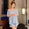 Summer Girls Two Pieces Short Sleeve Pajamas with Slash Neck Bow Solid Women Homewear of Thin Soft Elastic Loose Home Clothing