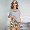 New Pajamas Loungewear Set Summer Ladies Leopard Print Love Top Shorts Sexy Two Piece Set of Casual Pajamas Loungewear