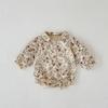 Autumn 2024 Baby Girl Cotton Romper: Printed, Lapel, Puff Sleeves, Long Sleeve, Loose Fit, Triangle Design for Crawling.