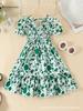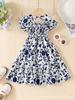 Girls Fashion Short Sleeve Dress Summer Children Sweet Fresh Floral Dress