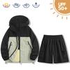Summer Men's Ice Sunscreen Suit Hooded Jacket and Shorts Set Lightweight Quick Drying Two Piece Set Couple Style